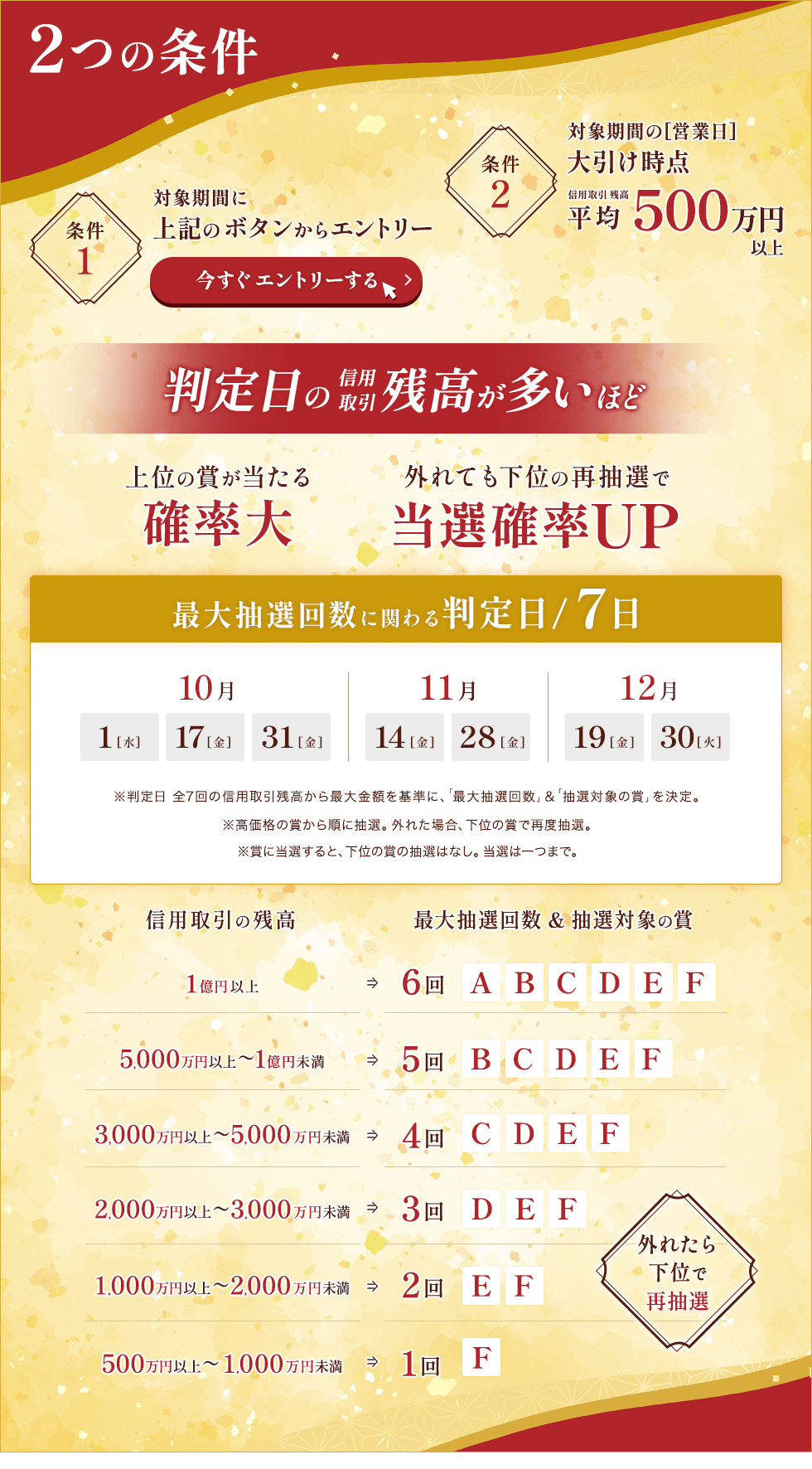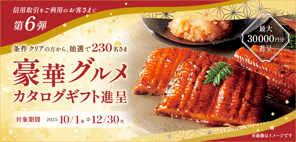 【要エントリー】第6弾:信用取引残高500万以上(税込)で豪華グルメカタログギフト最大30,000円分プレゼント