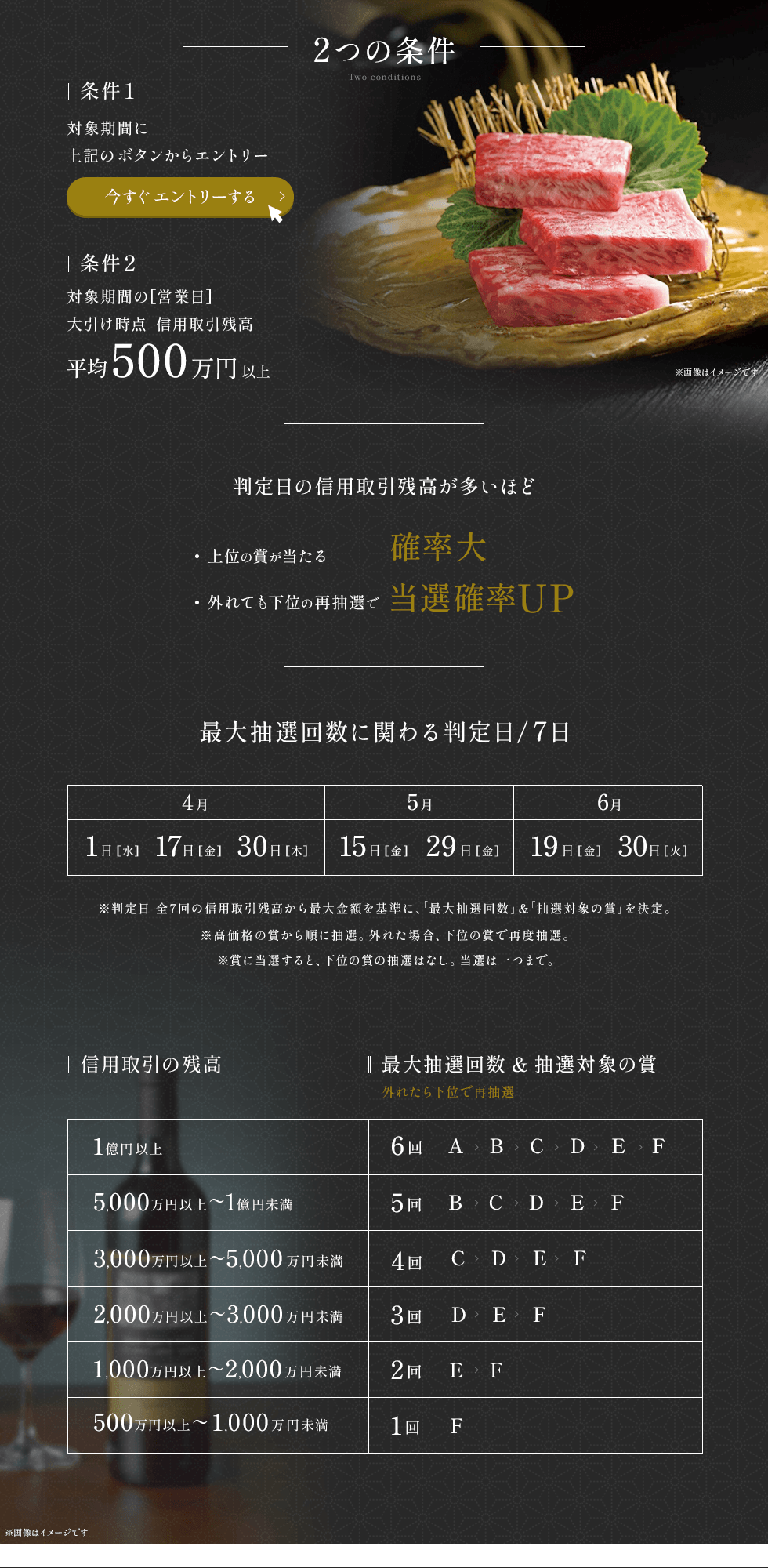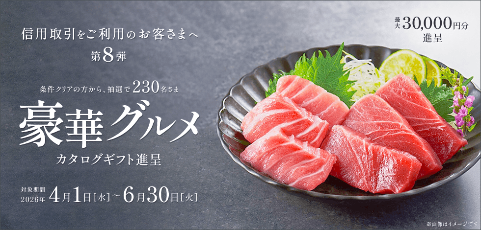 【要エントリー】第8弾:信用取引残高500万以上で豪華グルメカタログギフト最大30,000円分プレゼント