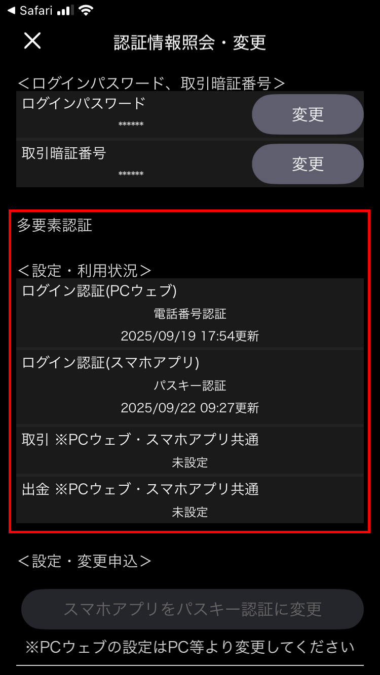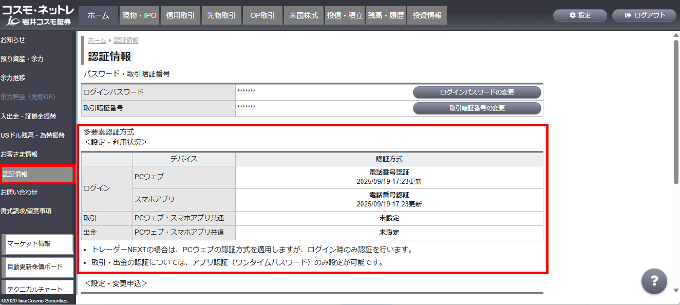 認証情報照会・変更 から確認