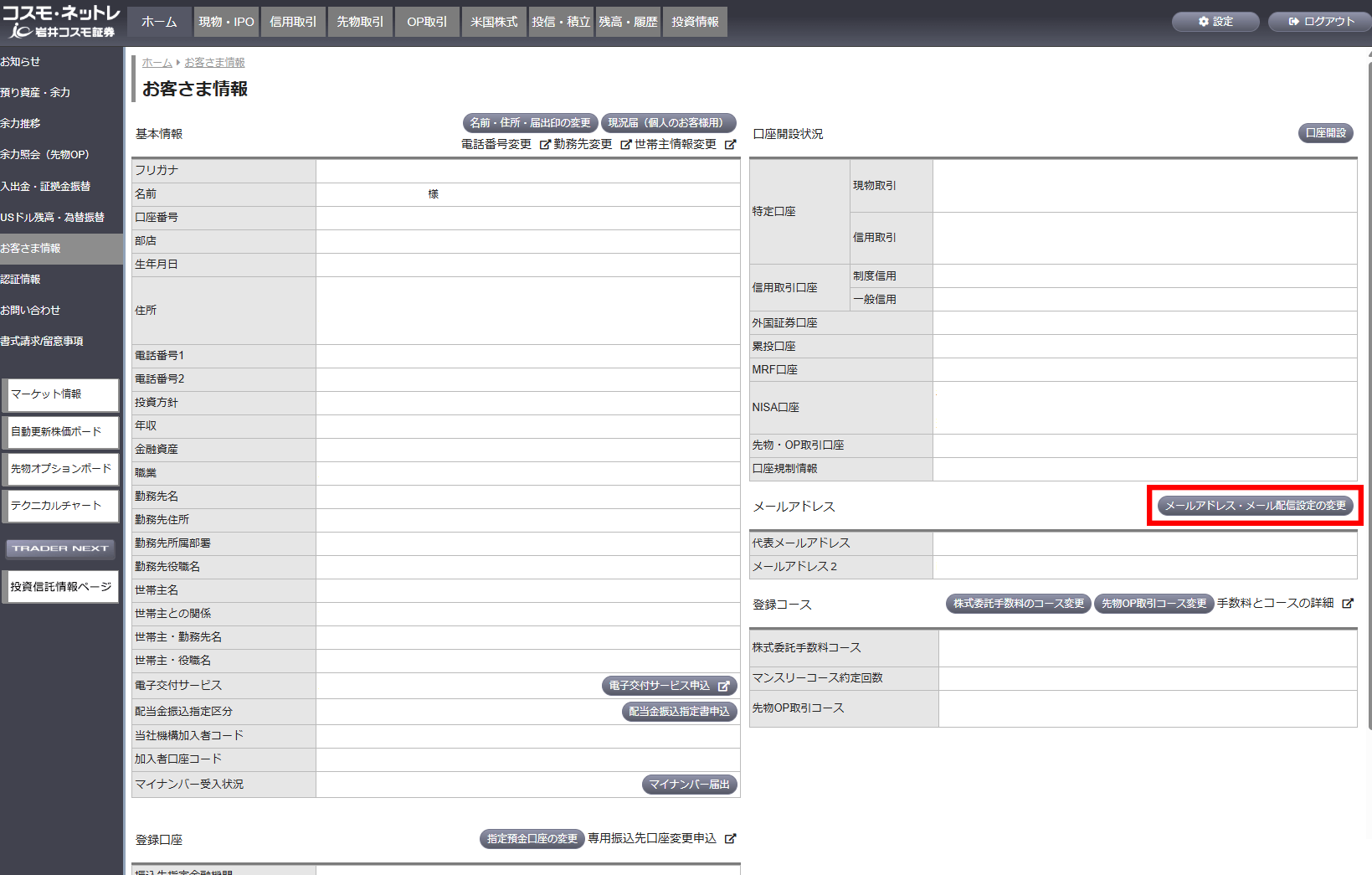 2. 「メールアドレス・メール配信設定の変更」ボタンを選択