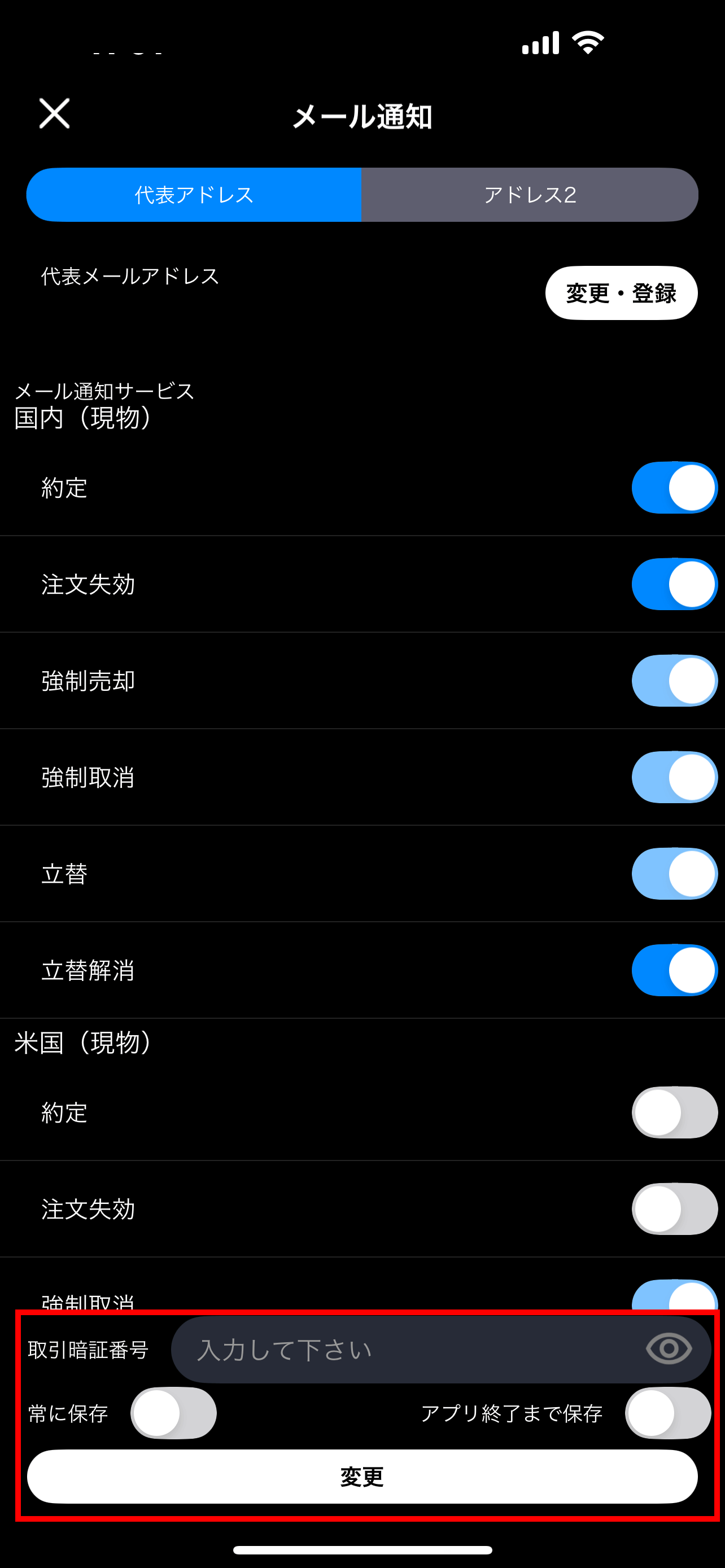 3. 希望の設定に変更後、取引暗証番号を入力し、「変更」ボタンを選択